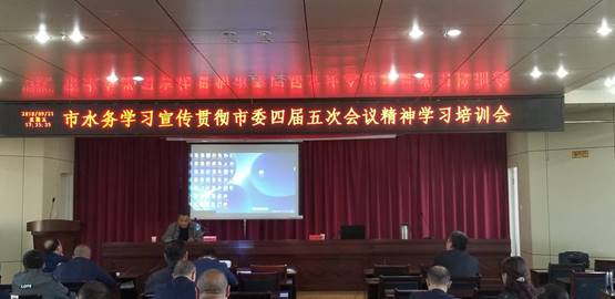 自忻州市委四屆五次會議以來,忻州市水務有限責任公司站在講政治的高度將落實全會精神作為頭等大事:先后組織了公司黨委中心組、公司助理以上、公司各黨支部、公司中層副職以上領導四個層面的集中學習。