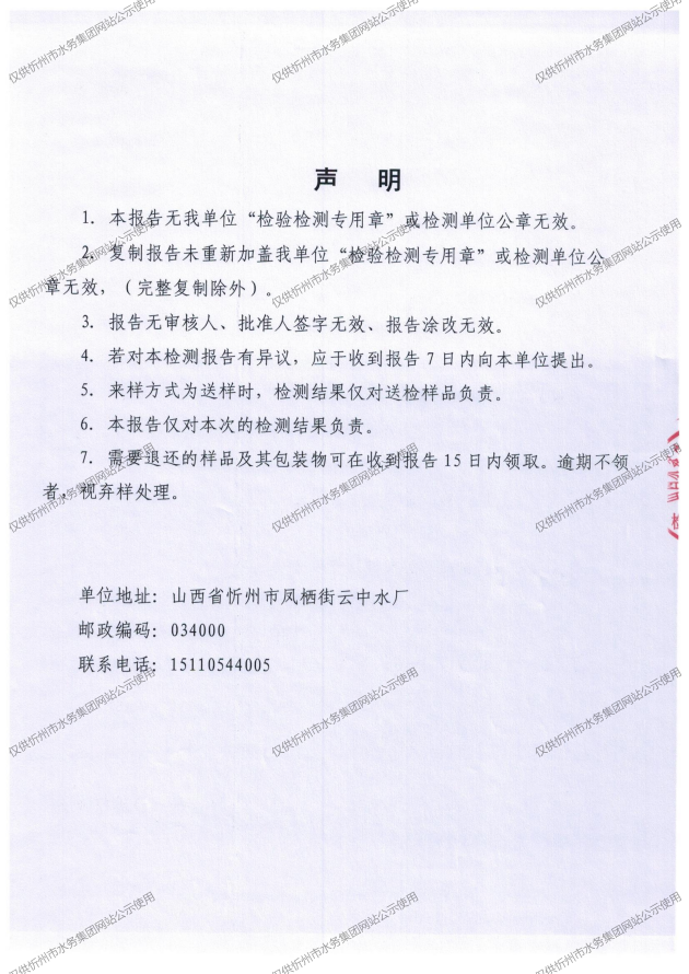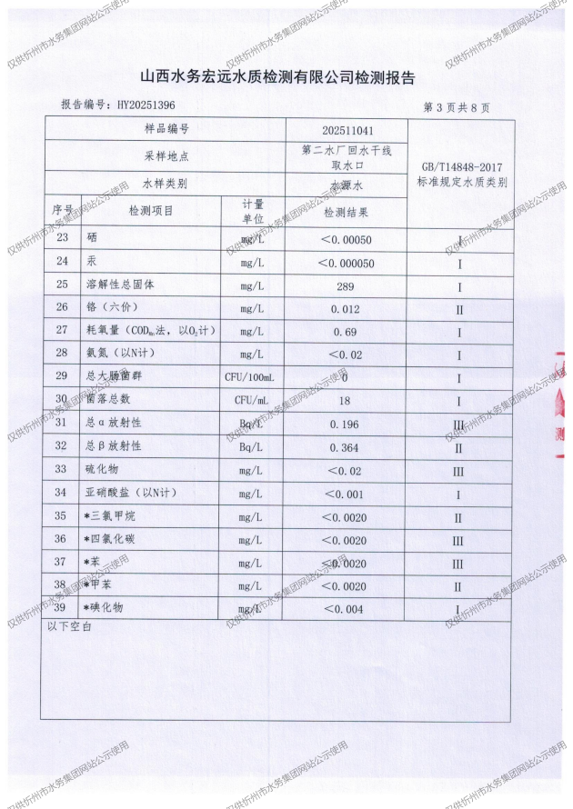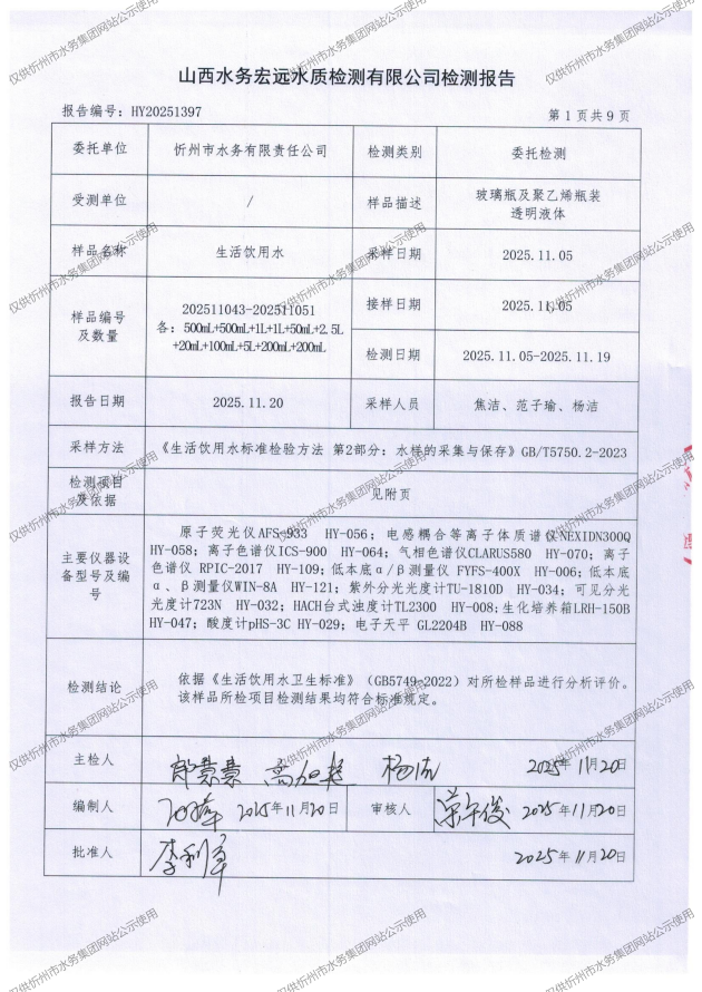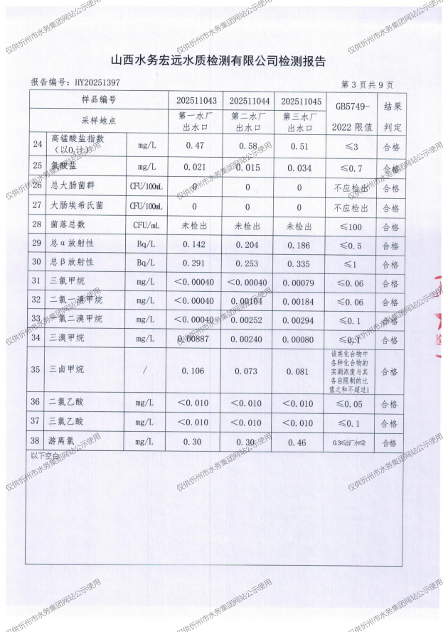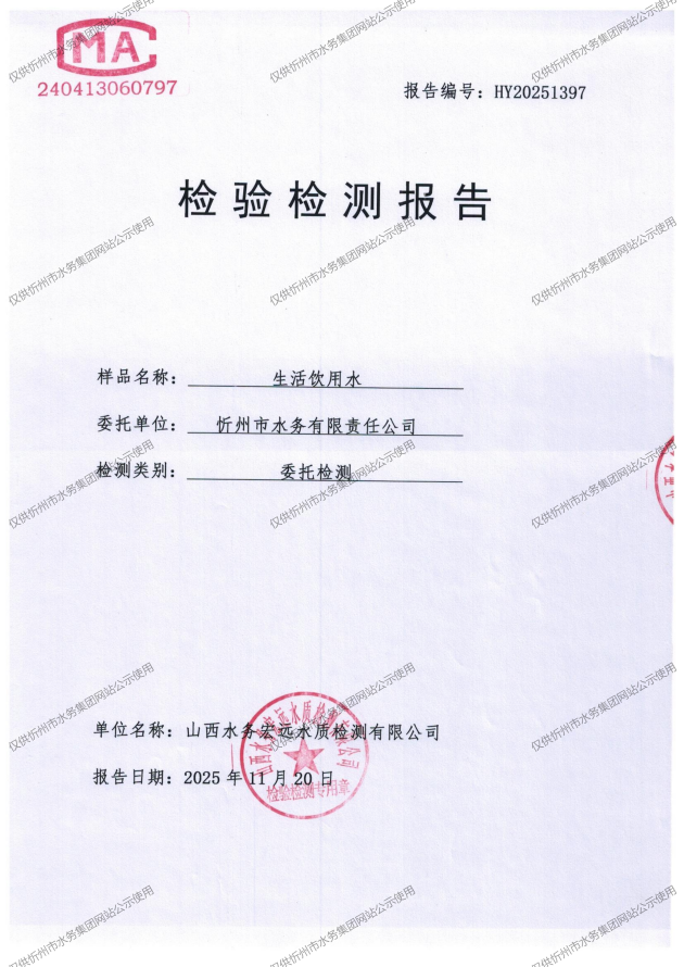 忻州城區(qū)公共供水水源水、出廠水、管網(wǎng)水、管網(wǎng)末梢水2025年11月份水質(zhì)信息公示