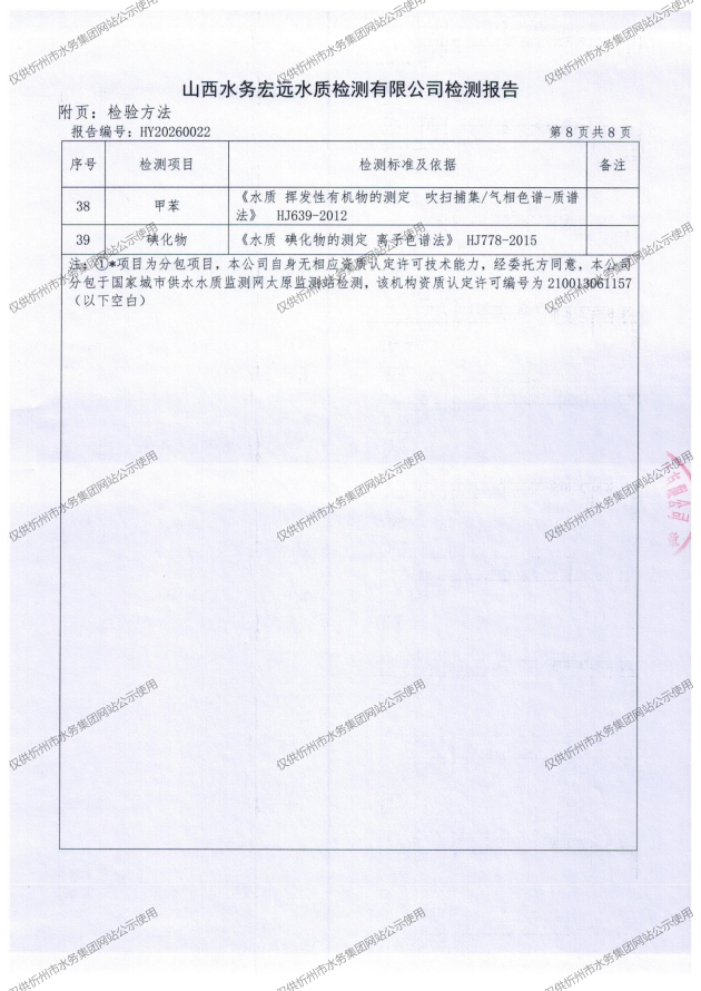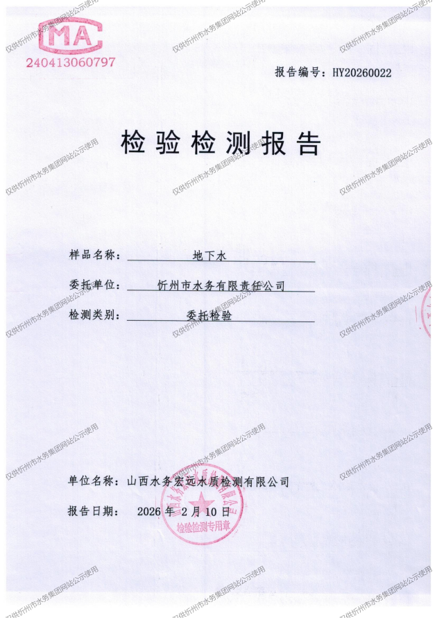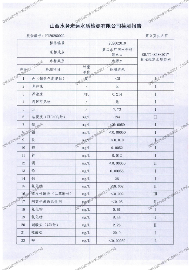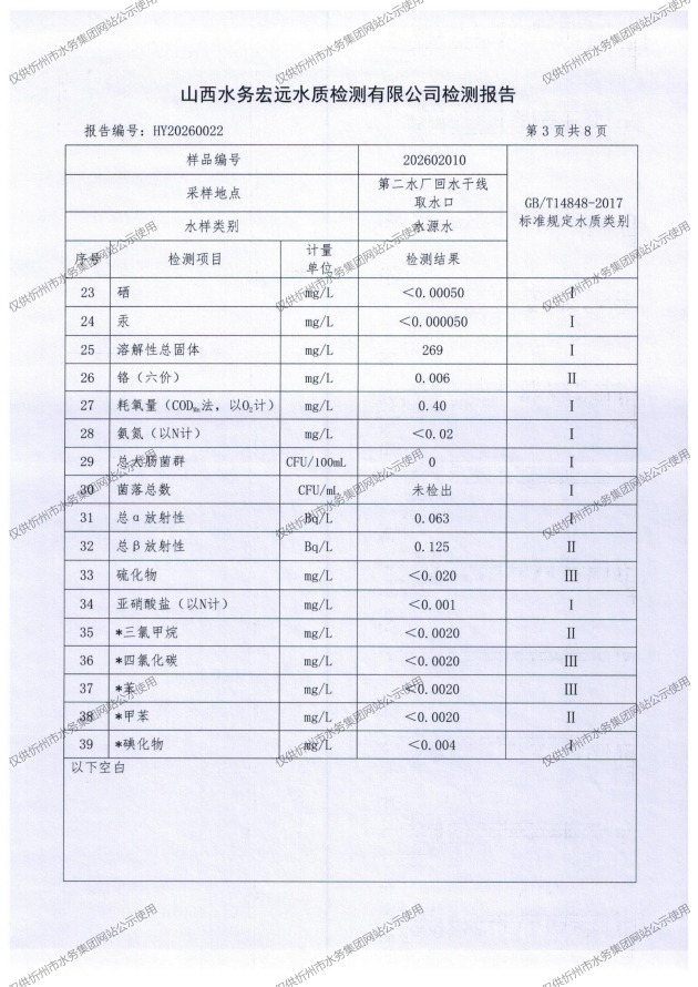 忻州城區(qū)公共供水水源水、出廠水、管網(wǎng)水、管網(wǎng)末梢水2026年2月份水質(zhì)信息公示