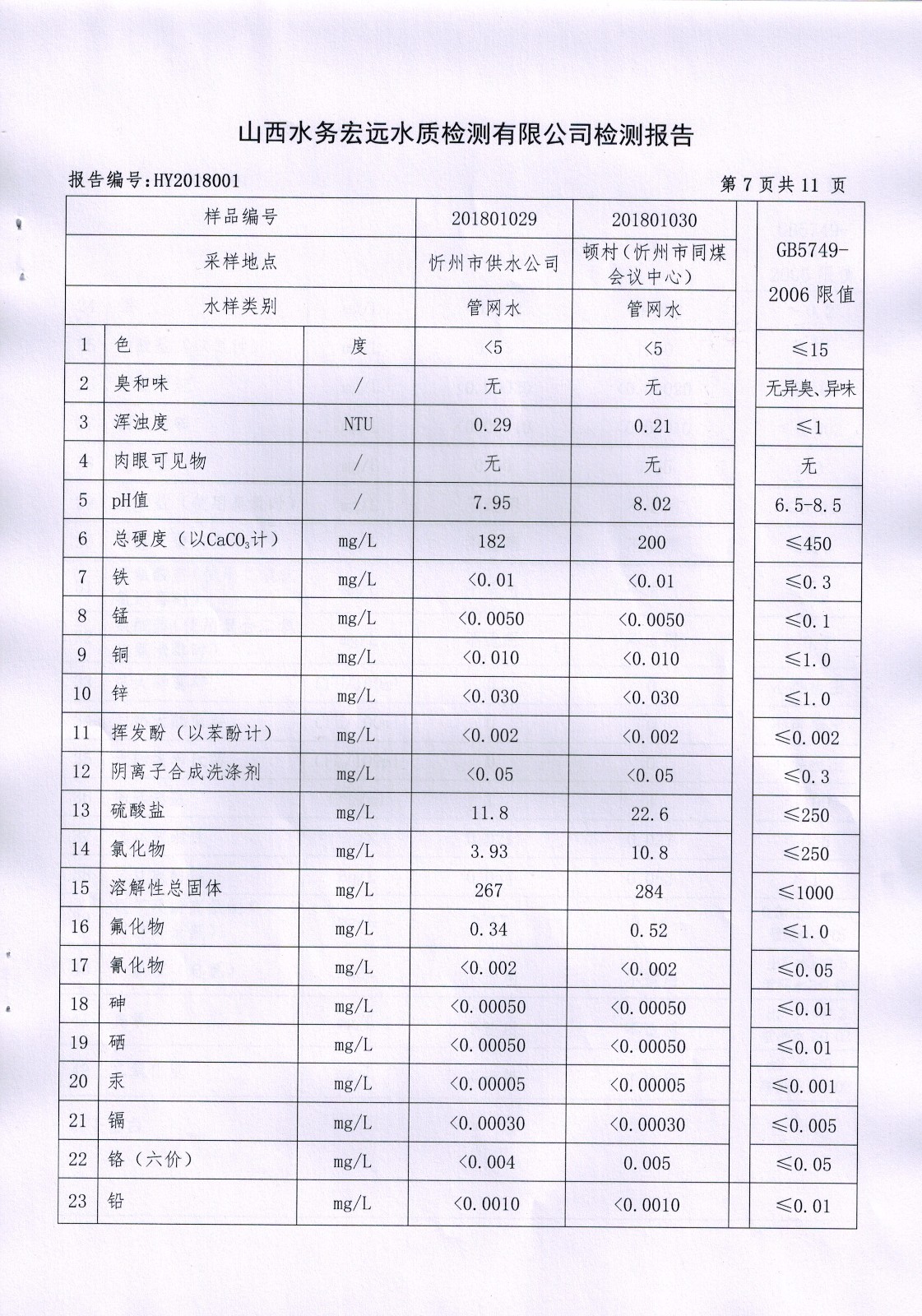 忻州城區(qū)公共供水水源水、出廠水、管網(wǎng)水、管網(wǎng)末梢水2018年1月份水質(zhì)信息公示