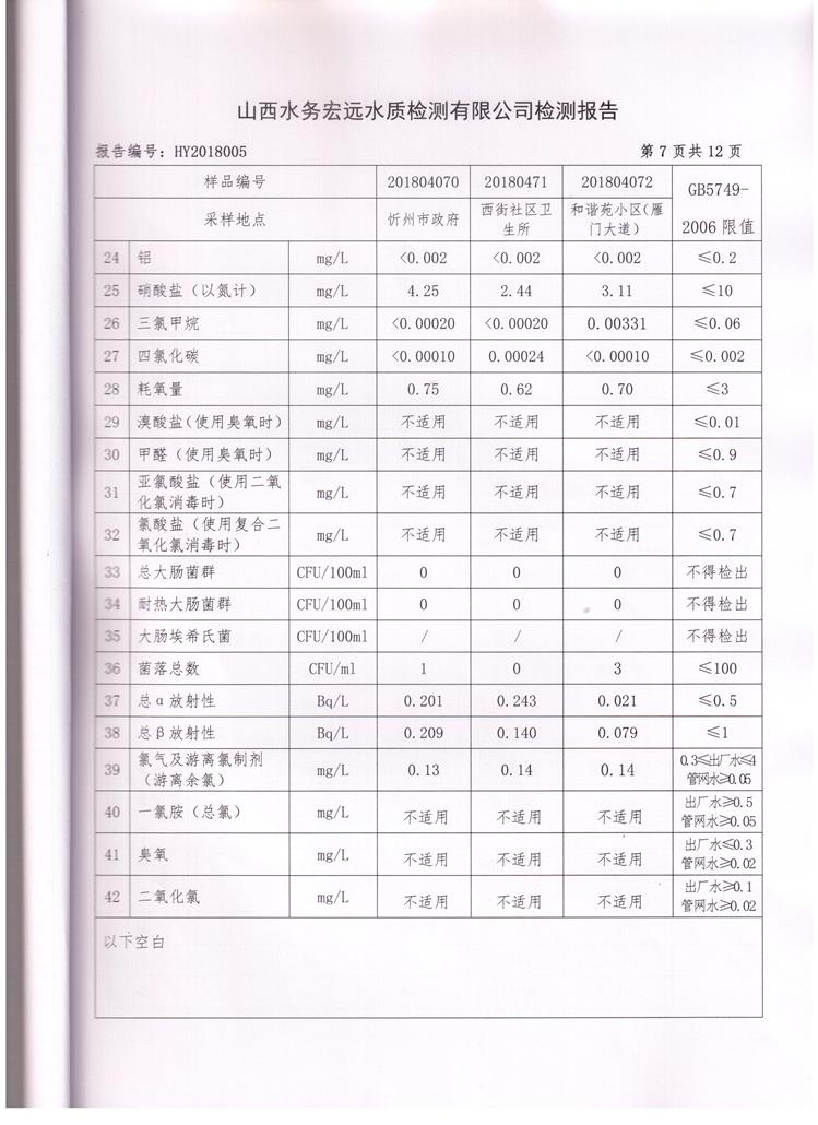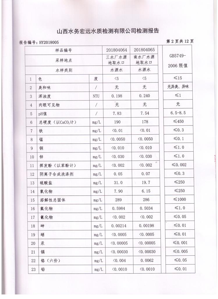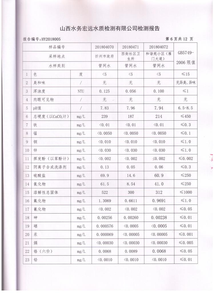忻州城區(qū)公共供水水源水、出廠水、管網(wǎng)水、管網(wǎng)末梢水2018年4月份水質(zhì)信息公示