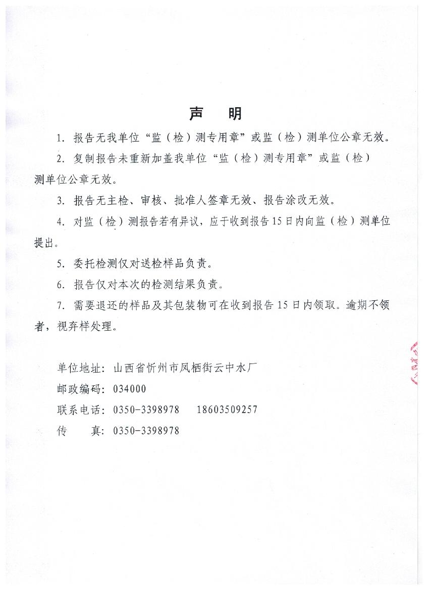 忻州城區(qū)公共供水水源水、出廠水、管網(wǎng)水、管網(wǎng)末梢水2020年4月份水質(zhì)信息公示